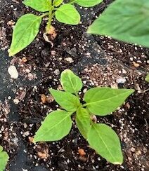 株間は横長プランター植えで複数本栽培の場合、25㎝以上は確保しましょう。唐辛子は根が横に広がるため、間隔が狭すぎると養分や水分、枝葉が重なって日光の奪い合いになり、生育が弱くなります。出来れば30cm以上空けると風通しも良くなり、病害虫の予防にもつながります。