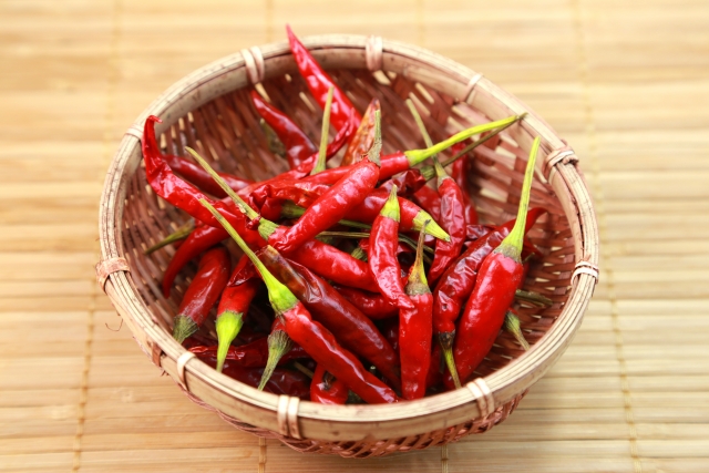 鍋料理の薬味:乾燥鷹の爪をそのままちぎって加えると風味が引き立ちます。