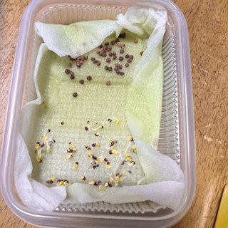数日〜1週間ほどで白い芽が出始めます。その後、根を傷つけないよう注意して土にまけば、発芽率がぐんと上がります。